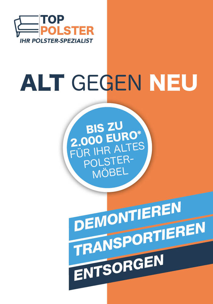 Nutzen Sie unsere großartige ALT-GEGEN-NEU-TAUSCHPRÄMIE und freuen Sie sich über bis zu 2.000 Euro Sofortabzug auf Ihr neues Traumsofa.